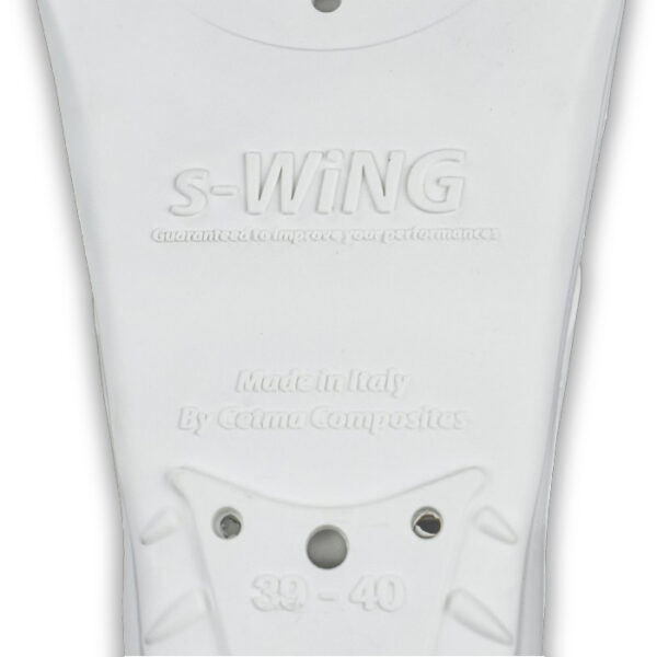 - Les chaussons S-WiNG sont conçus avec deux stabilisateurs verticaux qui évitent le glissement latéral, permettant également de canaliser l’eau de manière efficace.